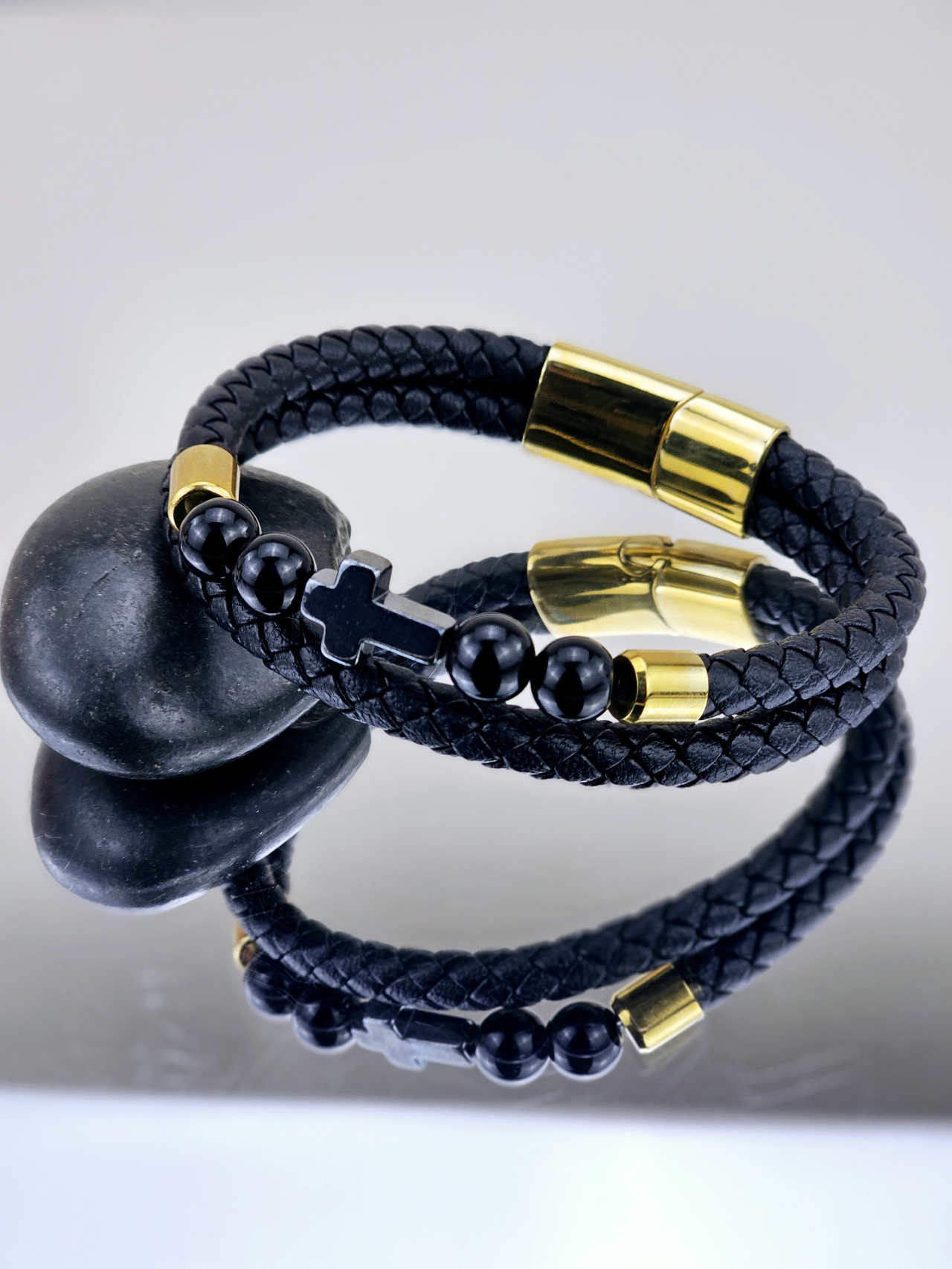Ανδρικό βραχιόλι με κορδόνι δερματίνης και ατσάλινα στοιχεία. Διαθέτει ατσάλινο μαγνητικό κούμπωμα.