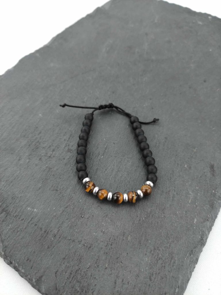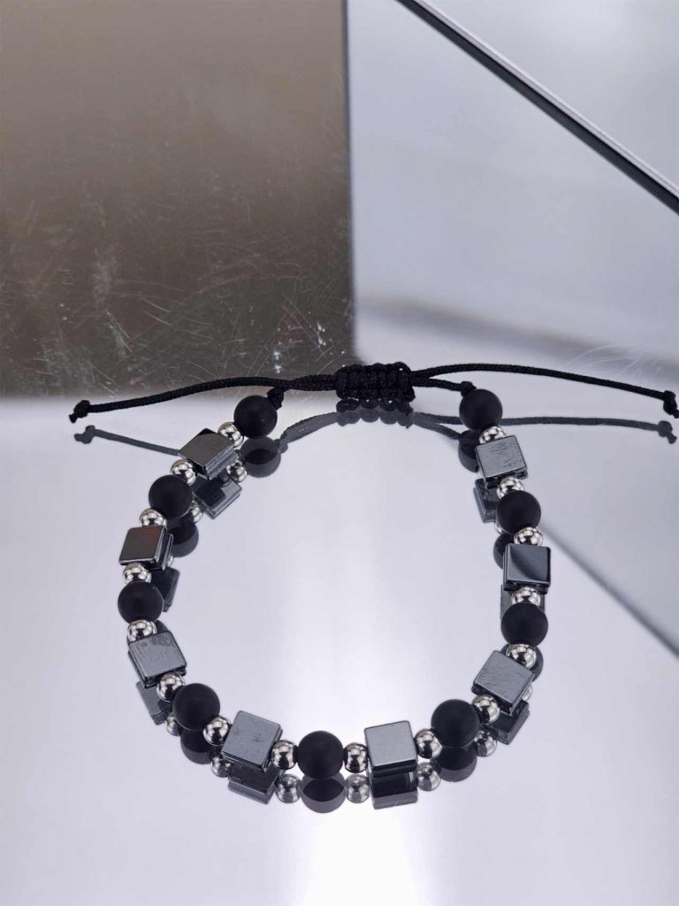 Χειροποίητο ανδρικό βραχιόλι με γυάλινες πέτρες,ατσάλινα στοιχεία και επαργυρωμένο μοτίφ.