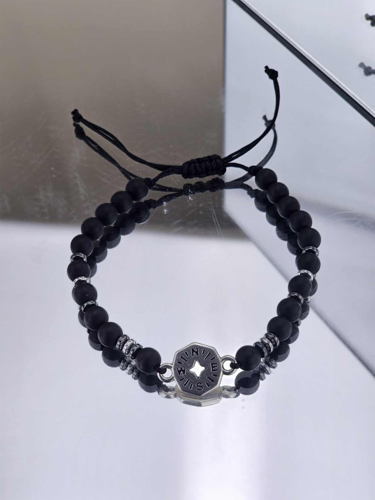 Χειροποίητο ανδρικό βραχιόλι με γυάλινες πέτρες,ατσάλινα στοιχεία και επαργυρωμένο μοτίφ.