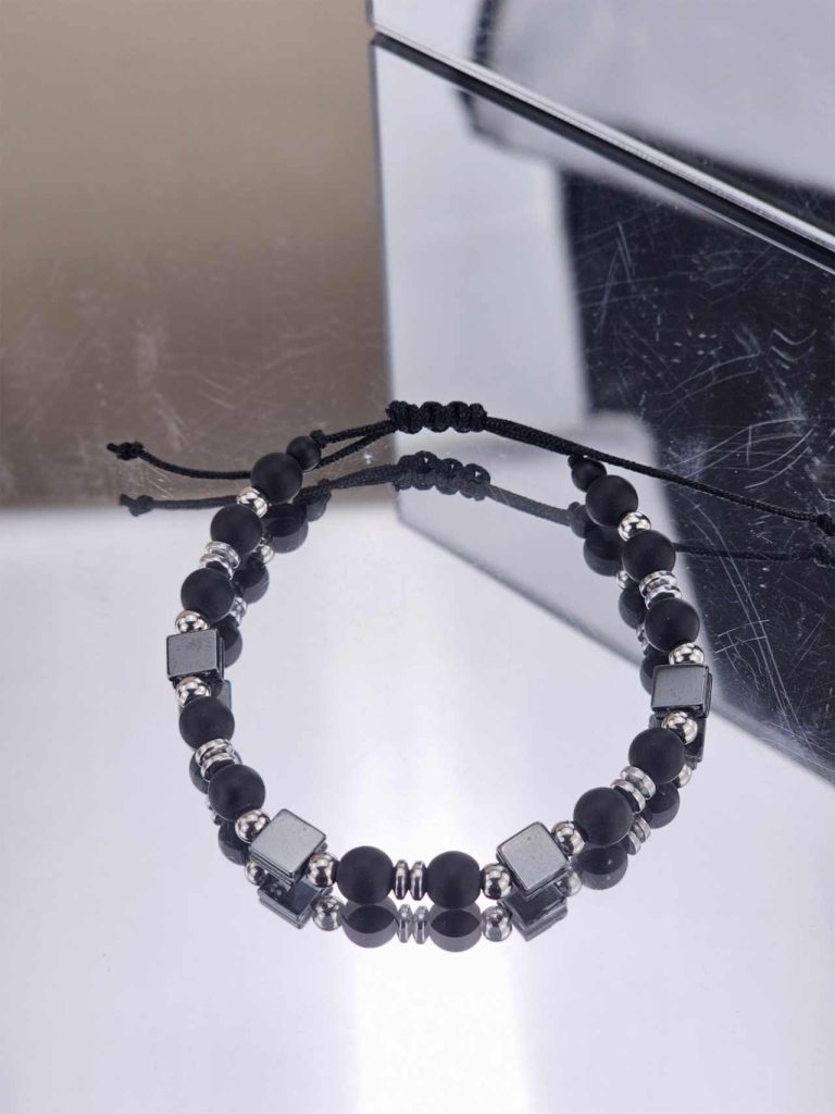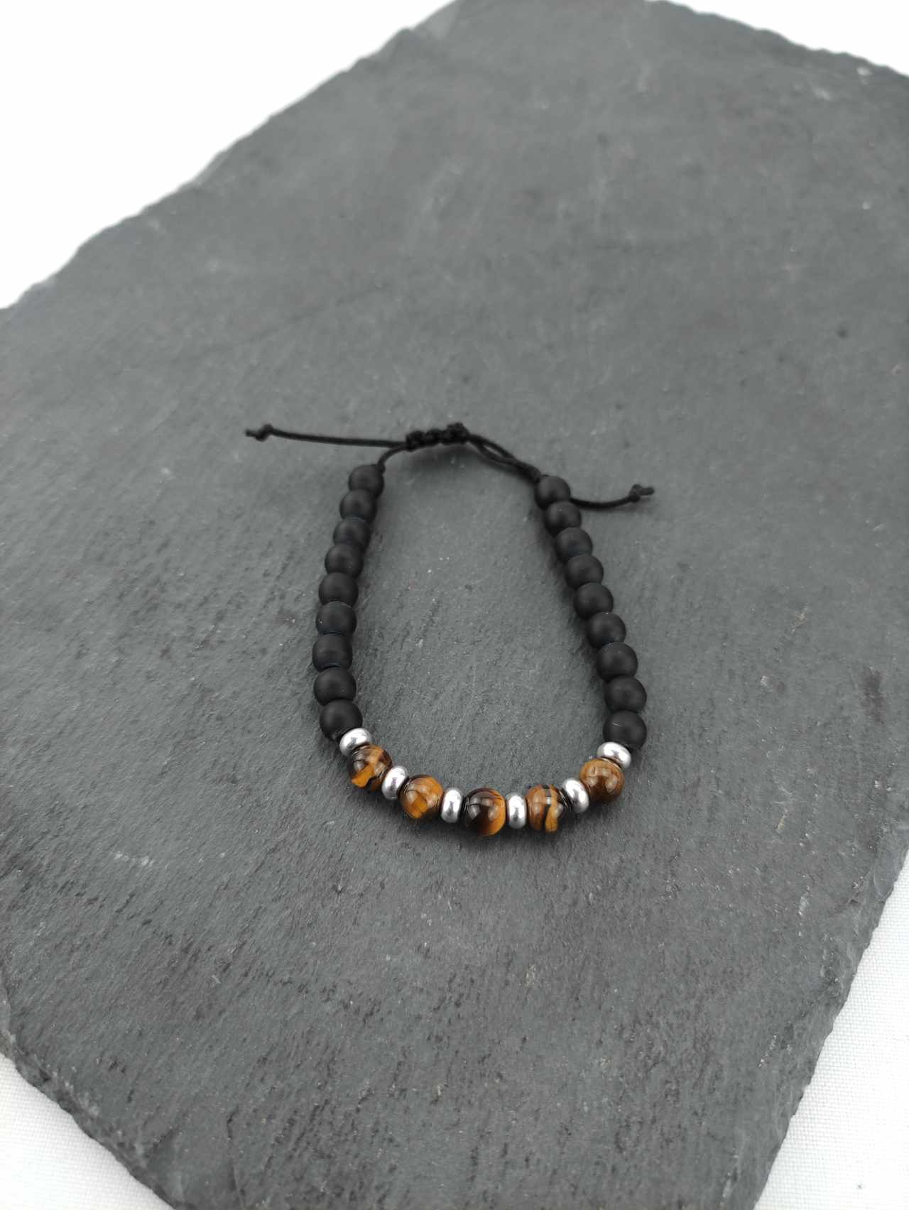 Χειροποίητο ανδρικό βραχιόλι με ημιπολύτιμες πέτρες και επάργυρα στοιχεία.