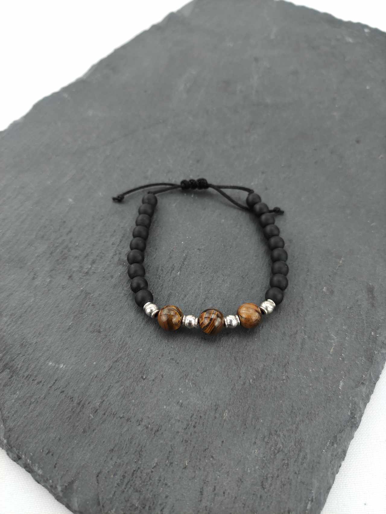 Χειροποίητο ανδρικό βραχιόλι με ημιπολύτιμες πέτρες και επάργυρα στοιχεία.