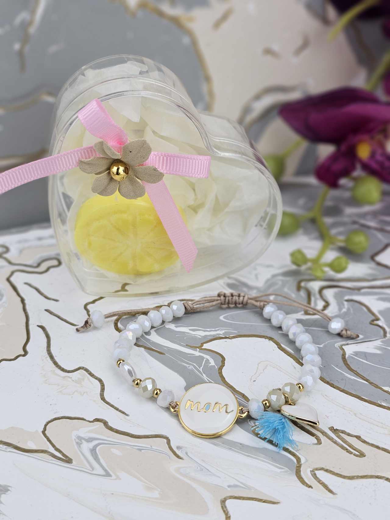 Χειροποίητο βραχιόλι για τη μαμά σε συσκευασία δώρου.