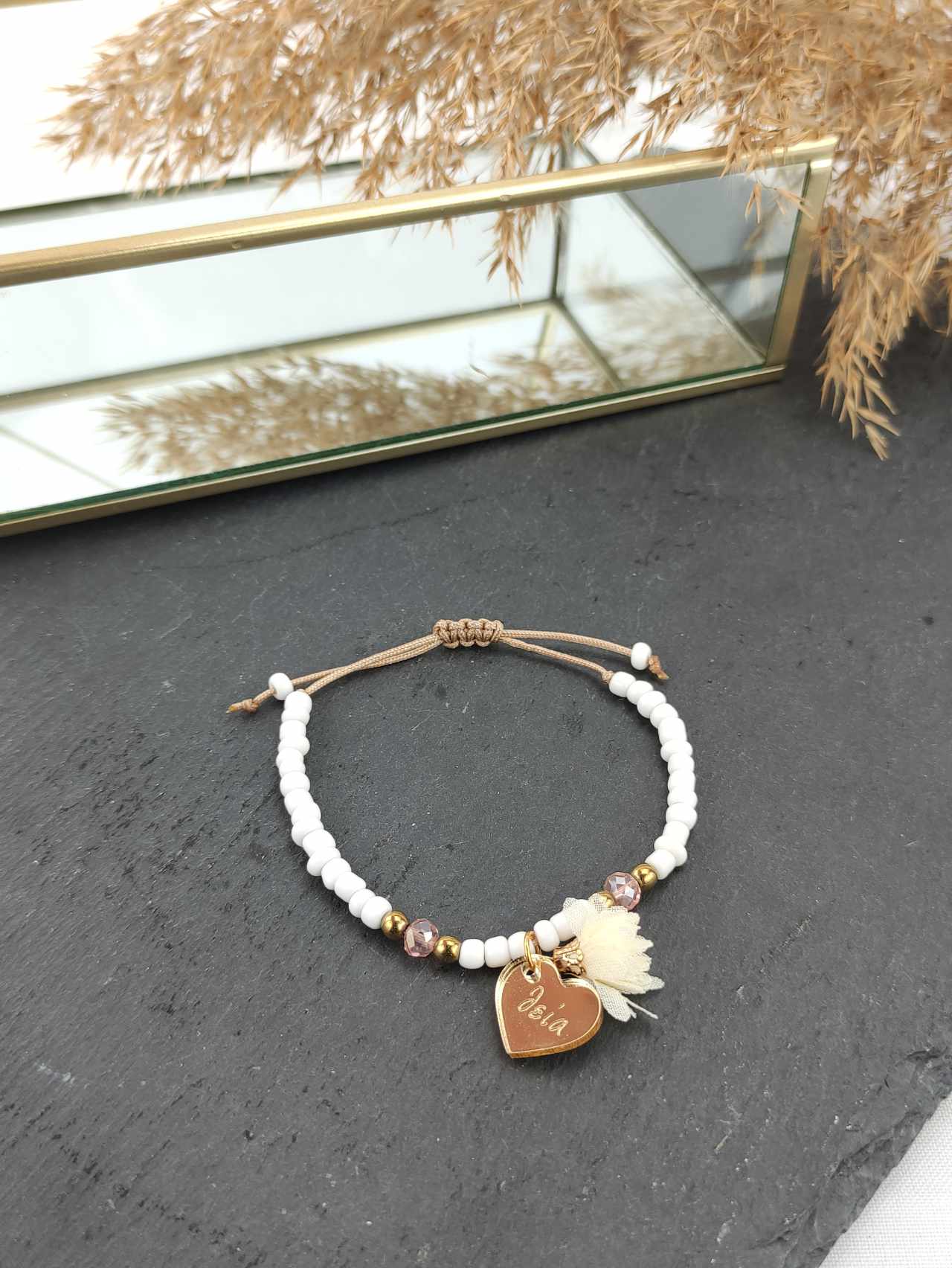 Χειροποίητο βραχιόλι για τη Θεία με χάντρες, φουντάκι κι επίχρυσα στοιχεία.