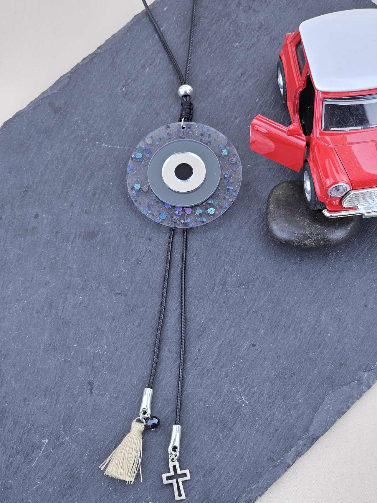 Χειροποίητο γούρι για το αυτοκίνητο με plexiglass μάτι και μεταλλικά στοιχεία.
