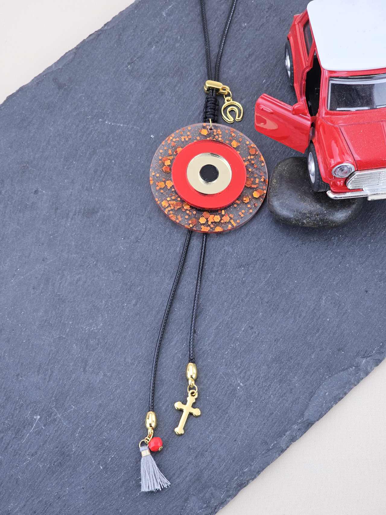 Χειροποίητο γούρι για το αυτοκίνητο με plexiglass μάτι και μεταλλικά στοιχεία.