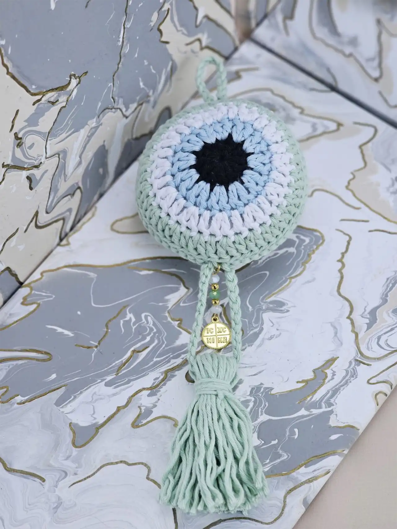 Γούρι για Νεογέννητο Amabile Πλεκτό Μάτι Μέντα
