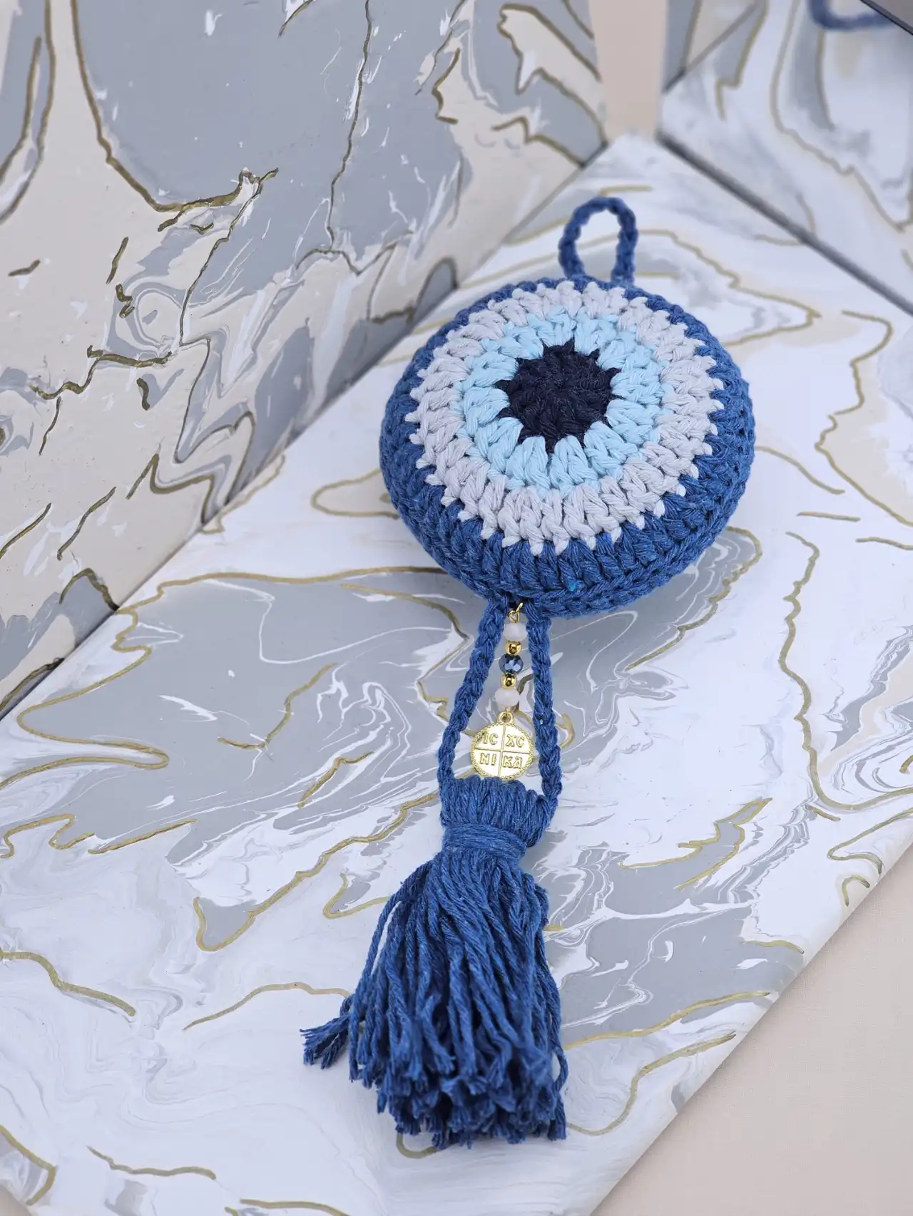 Χειροποίητο γούρι για νεογέννητο με πλεκτό ματάκι και χάντρες.