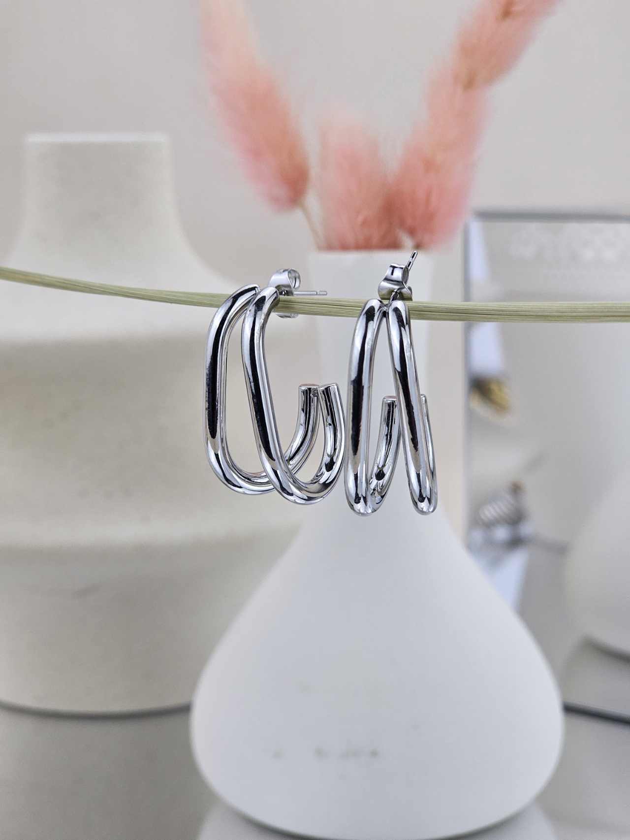 Γυναικεία Σκουλαρίκια Double Ovals in Silver