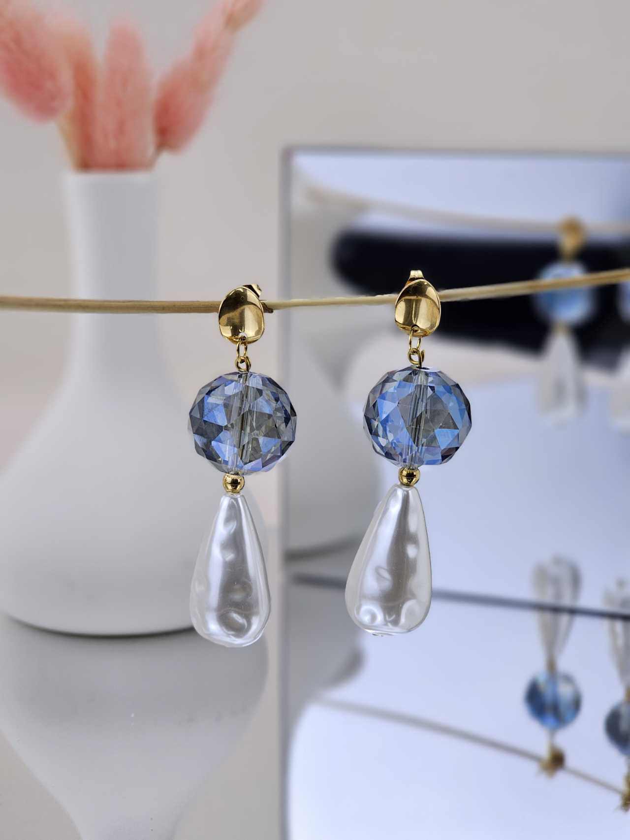 Χειροποίητα γυναικεία σκουλαρίκια με γυάλινες πέτρες και ατσάλινο κούμπωμα.