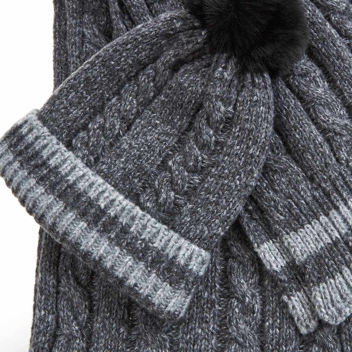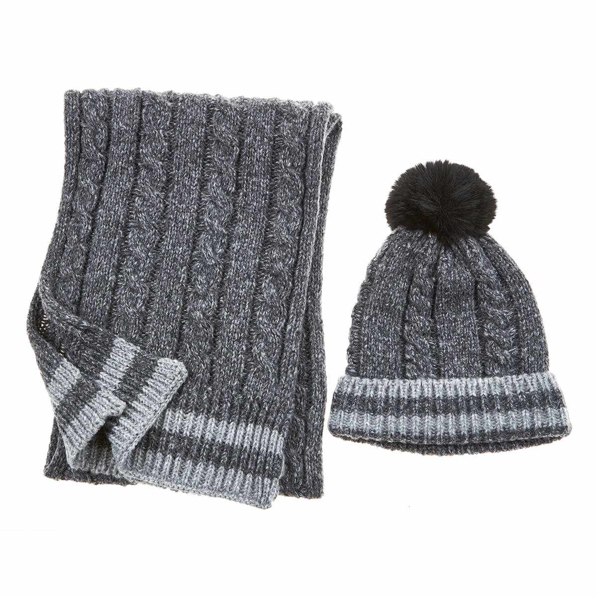 Γυναικείο σετ που περιλαμβάνει σκούφο με πομπον στην κορυφή και κασκόλ.