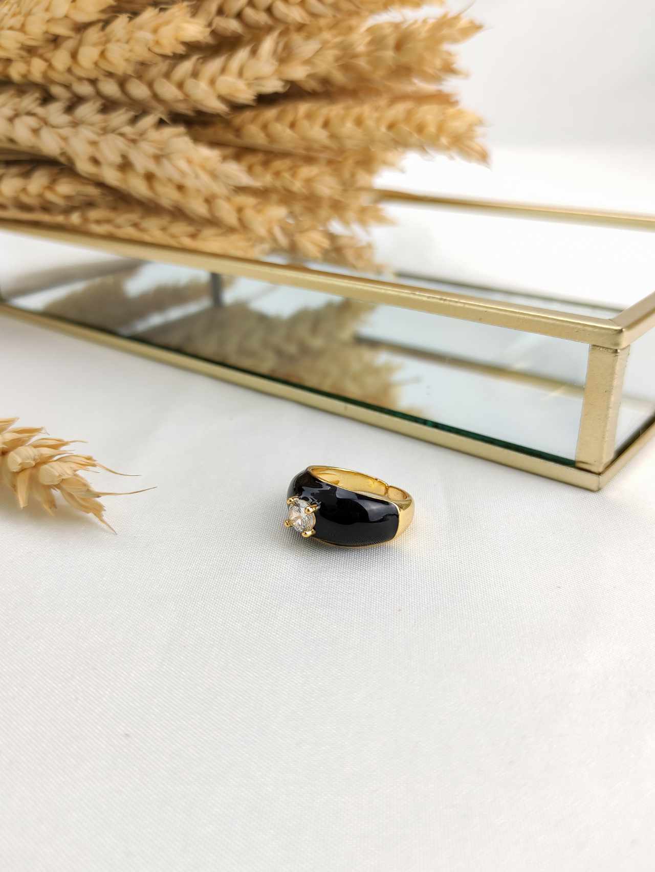 Γυναικείο επίχρυσο δαχτυλίδι με σμάλτο και ζιργκόν.