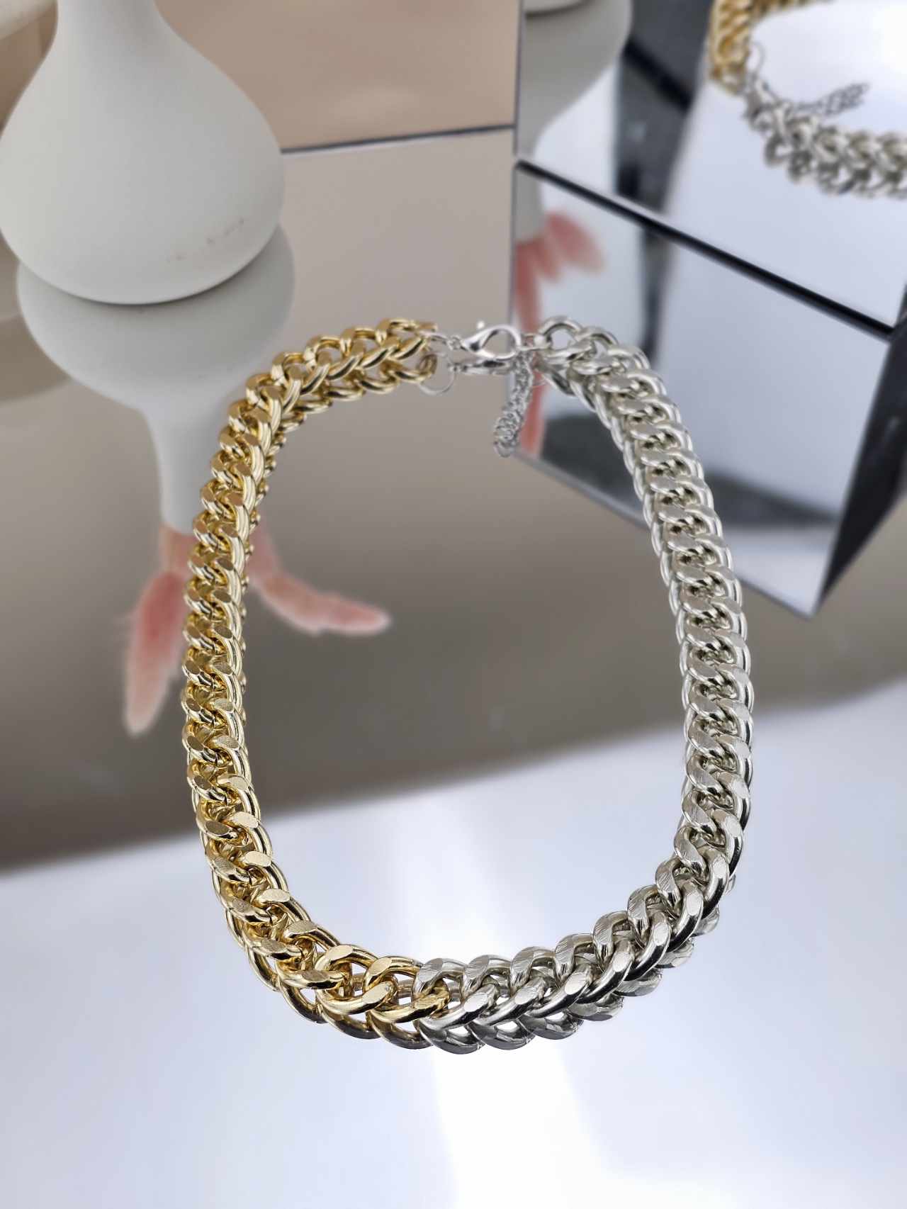 Χειροποίητο γυναικείο κολιέ από επίχρυση κι επάργυρη αλυσίδα.