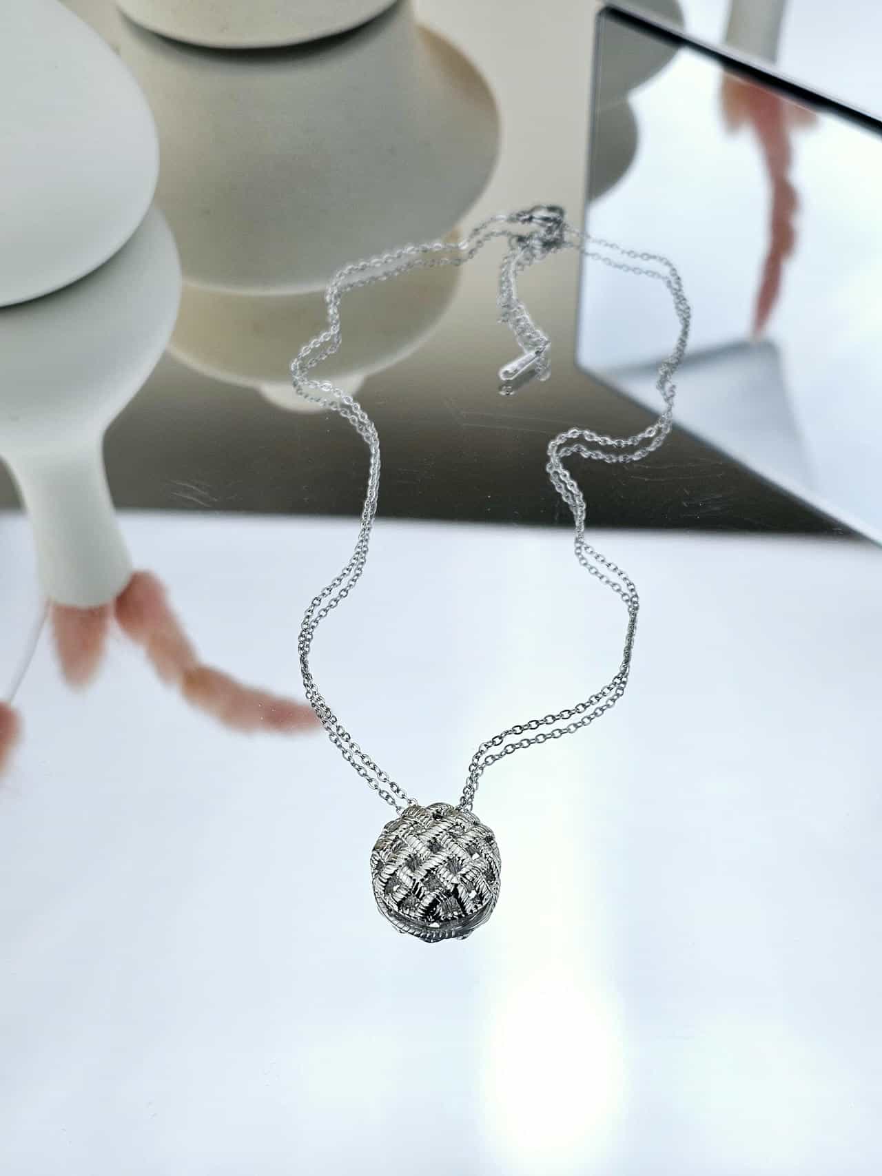 Χειροποίητο γυναικείο κολιέ από ατσάλινη αλυσίδα και ατσάλινο μοτίφ.