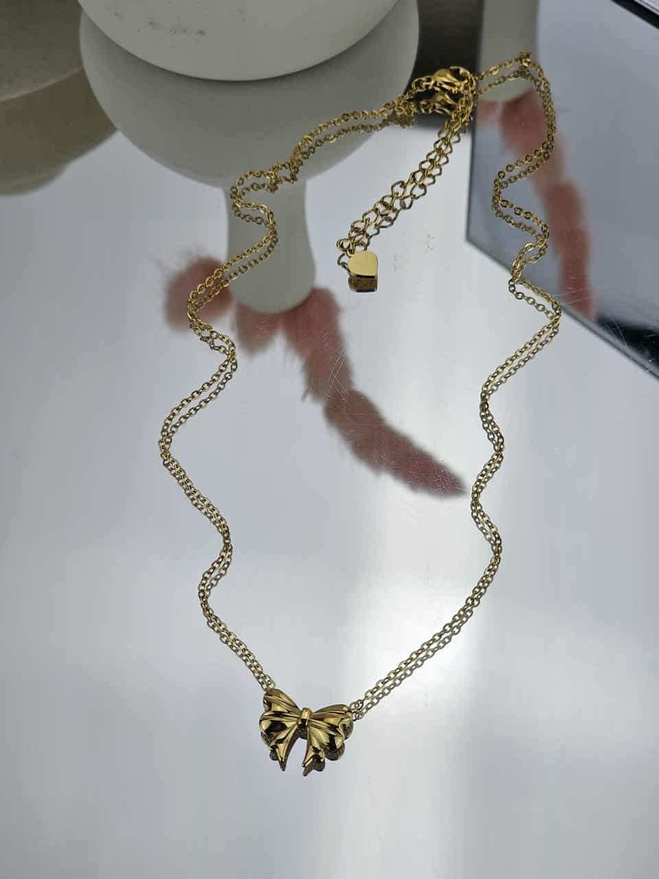 Γυναικείο Κοντό Κολιέ Cute Bow in Gold