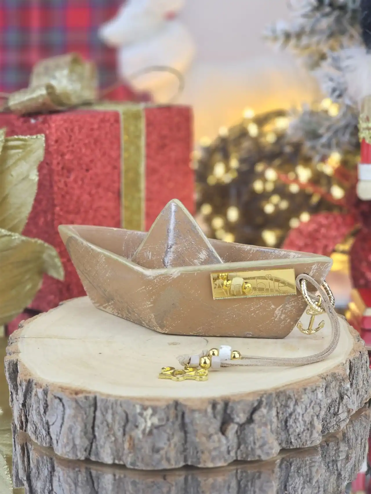 Χειροποίητο γούρι κεραμικό καράβι για τη νέα χρονιά βαμμένο και στολισμένο με τα πιο γιορτινά χρώματα και μοτίφ της σεζόν. Ιδανικό δώρο για τα αγαπημένα σας πρόσωπα.