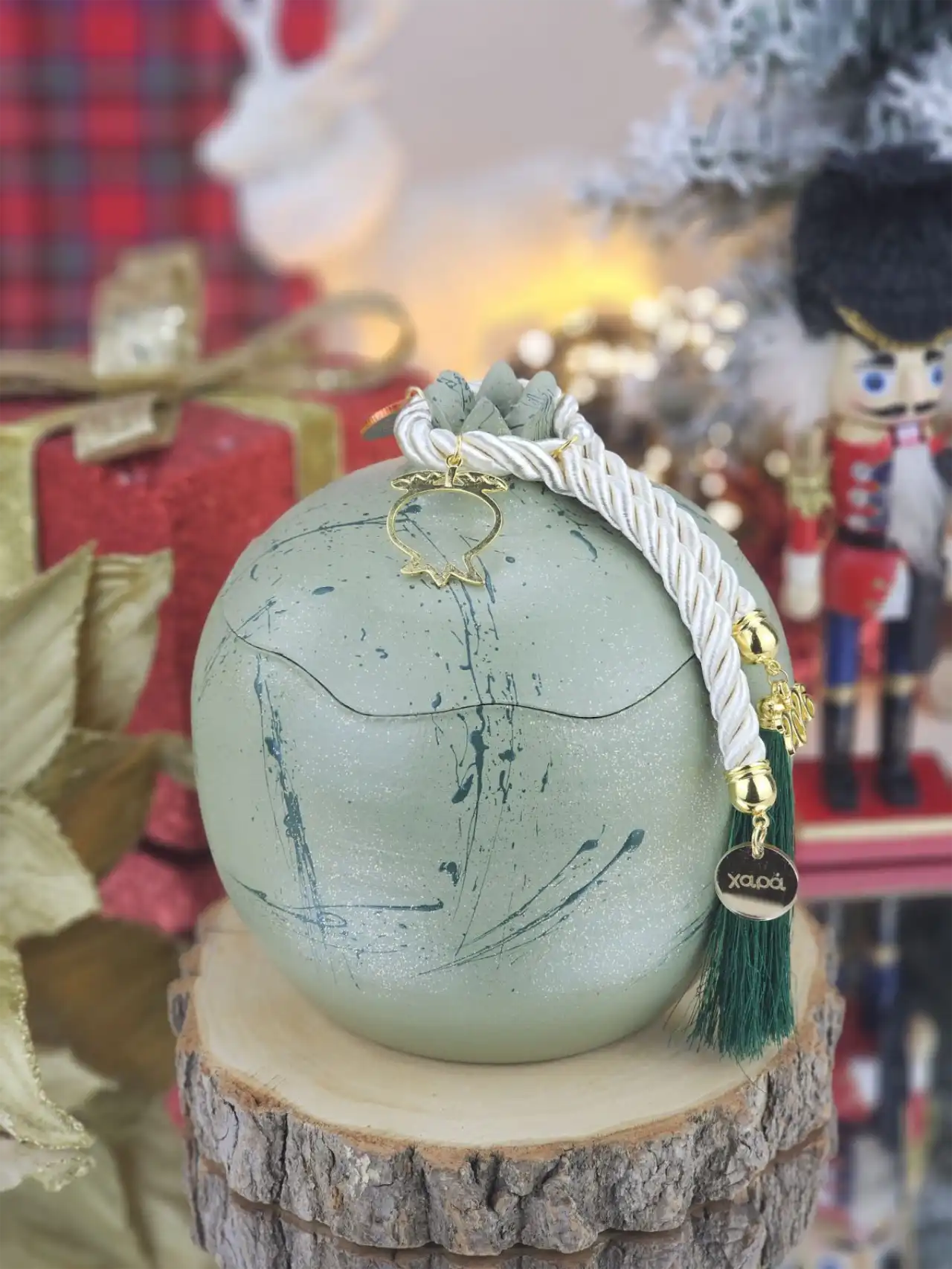 Διακοσμητικό Γούρι Κεραμικό Ρόδι XL Ανοιγόμενο Χακί