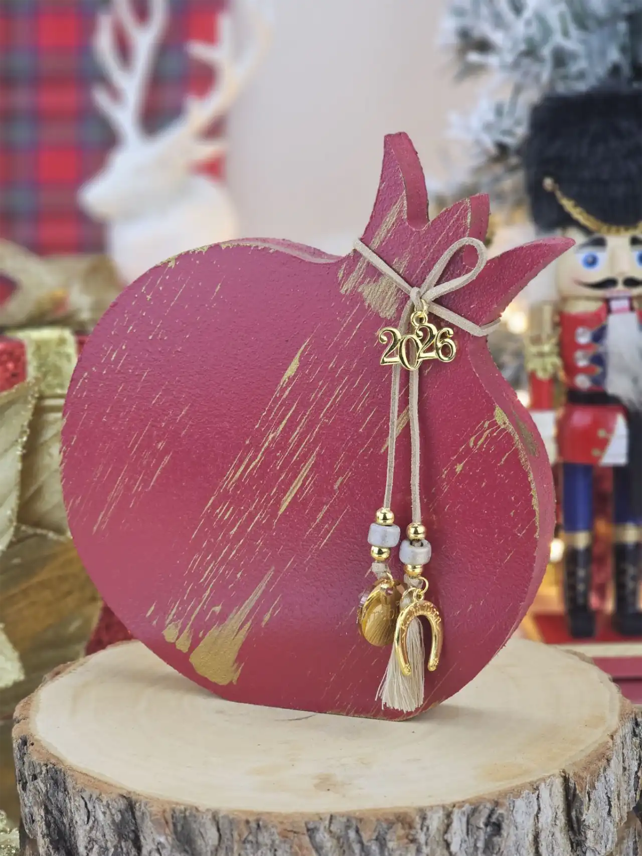 Διακοσμητικό Γούρι Ξύλινο Ρόδι L Μπορντό