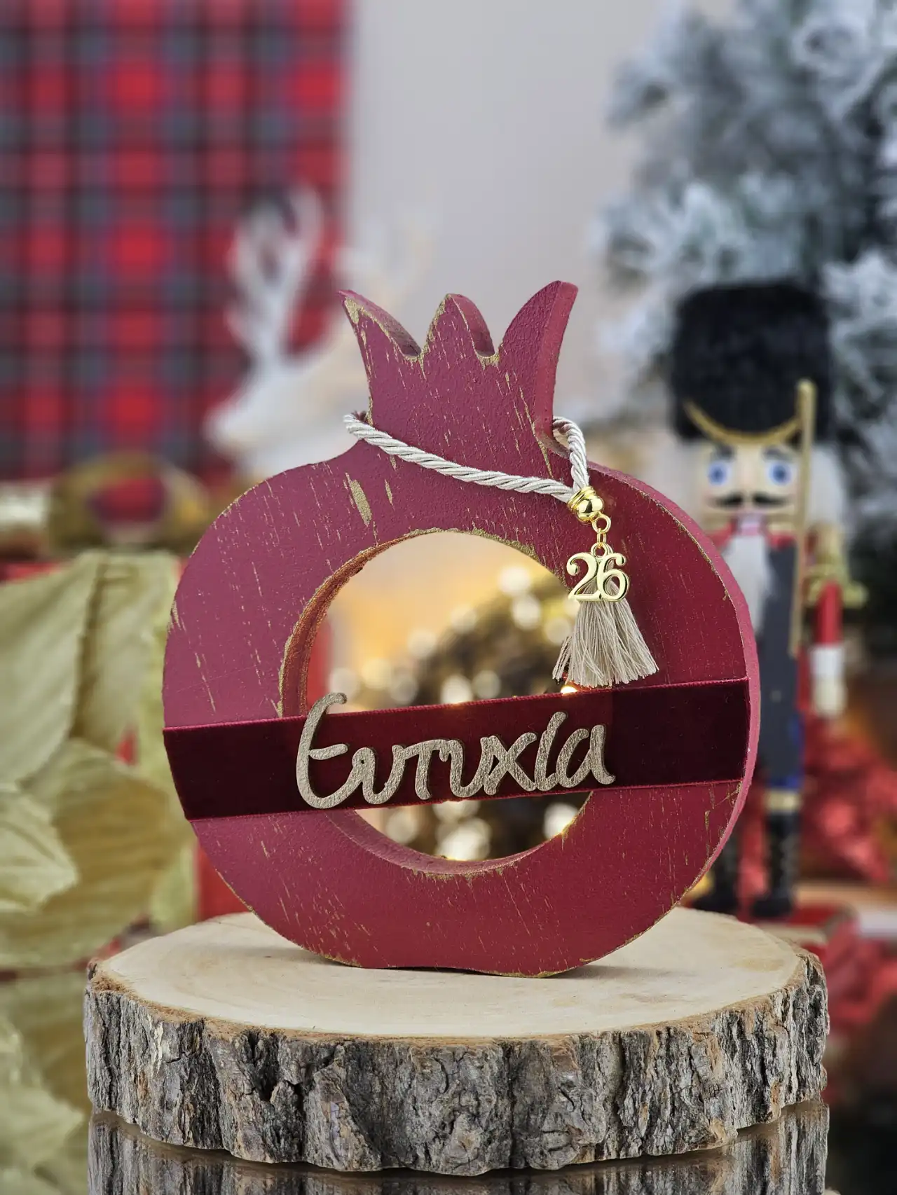 Διακοσμητικό Γούρι Ξύλινο Ρόδι Wish Μπορντό