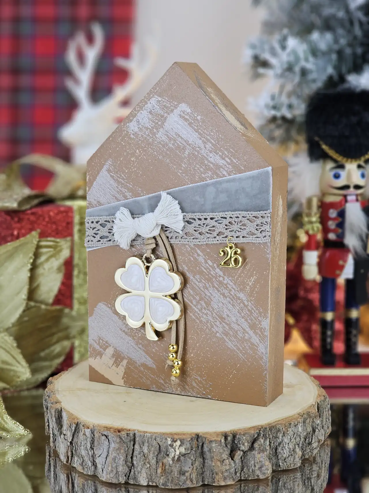 Διακοσμητικό Γούρι Ξύλινο Σπιτάκι Κάμελ