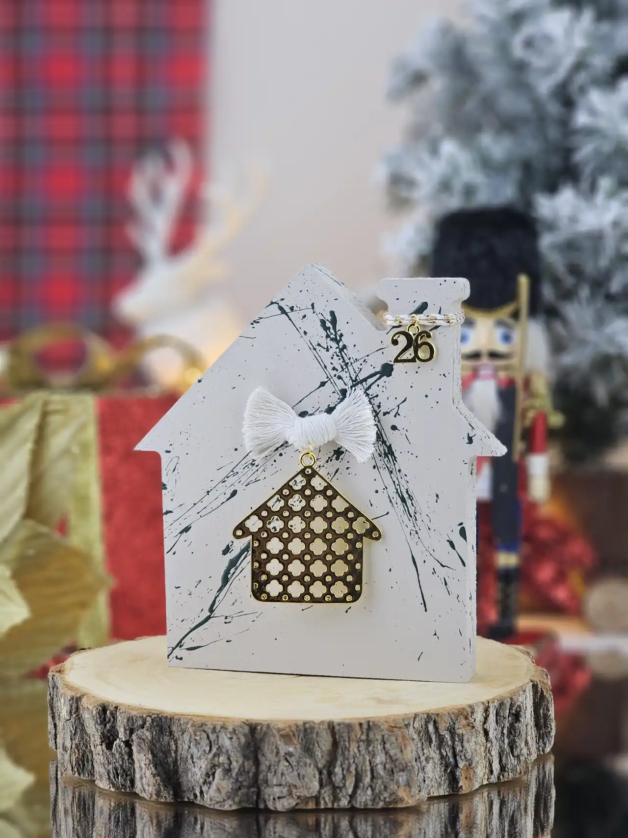 Χειροποίητο γούρι ξύλινο σπιτάκι για τη νέα χρονιά, βαμμένο και διακοσμημένο με τα πιο γιορτινά χρώματα και μοτίφ της σεζόν. Ιδανικό δώρο για τα αγαπημένα σας πρόσωπα.