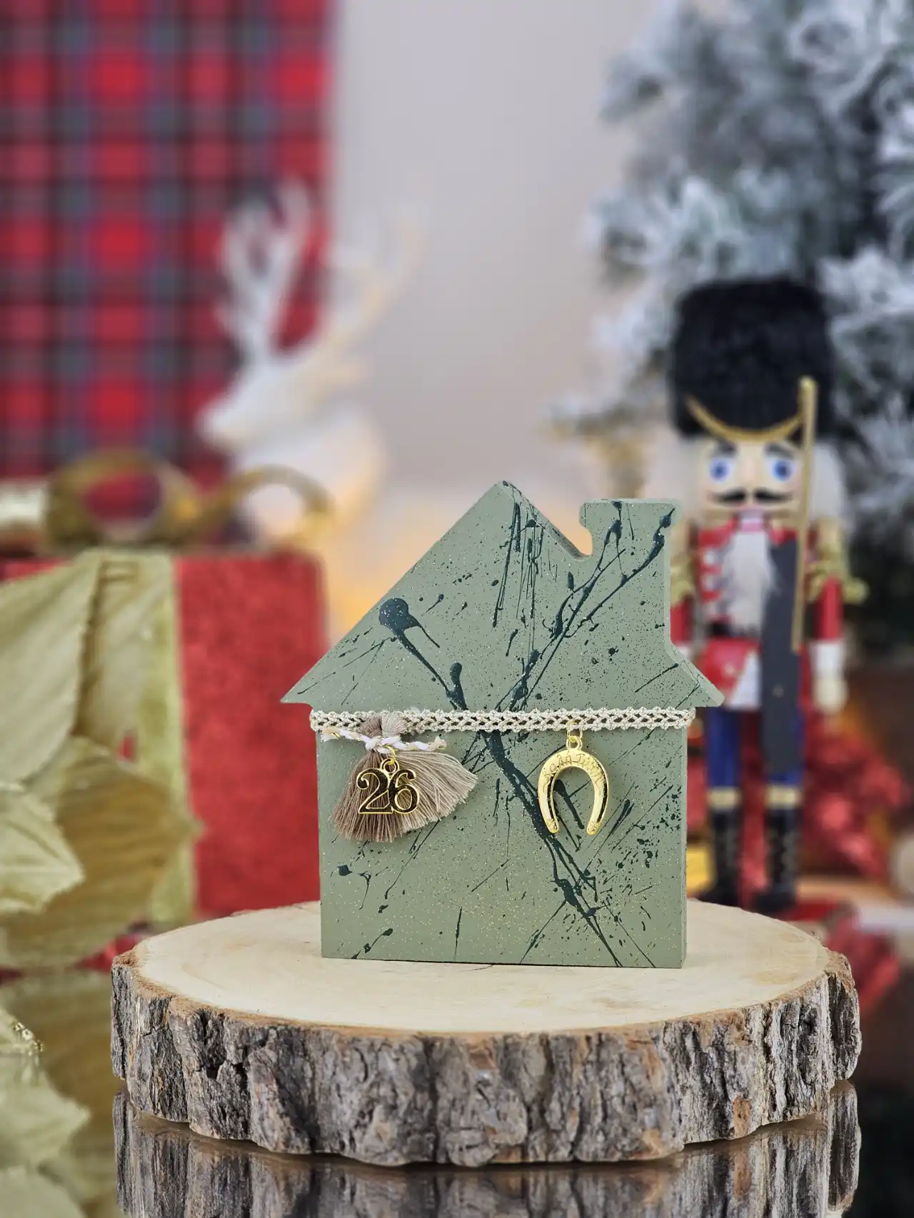 Διακοσμητικό Γούρι Ξύλινο Σπιτάκι S Χακί