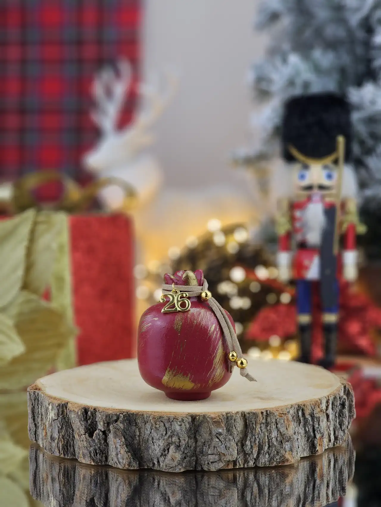Χειροποίητο γούρι κεραμικό ρόδι για τη νέα χρονιά, μικρού μεγέθους βαμμένο και διακοσμημένο με τα πιο γιορτινά χρώματα και μοτίφ της σεζόν.