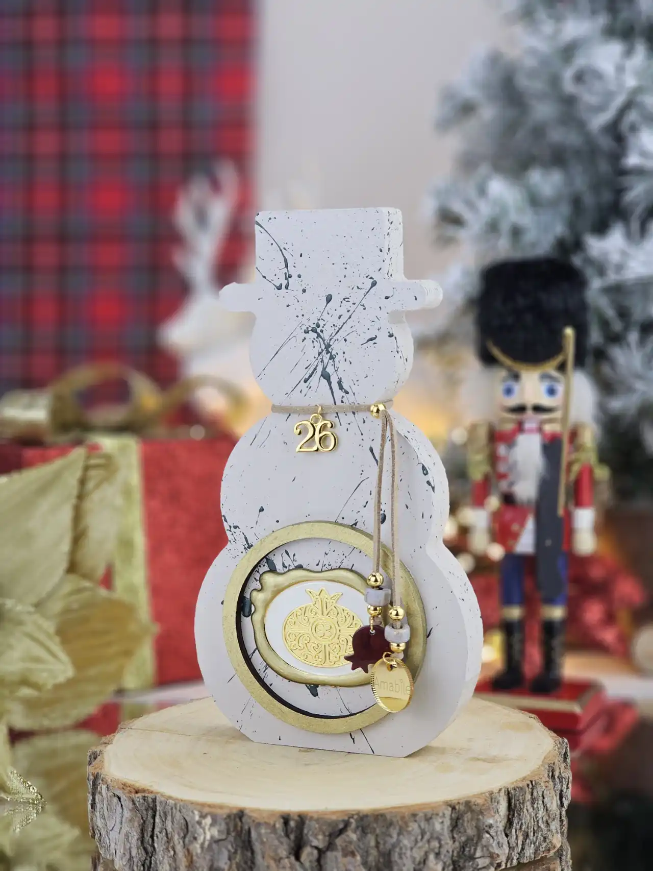 Χειροποίητο γούρι χιονάνθρωπος για τη νέα χρονιά, βαμμένο και διακοσμημένο με τα πιο γιορτινά χρώματα και μοτίφ της σεζόν.Ιδανικό δώρο για τα αγαπημένα σας πρόσωπα.