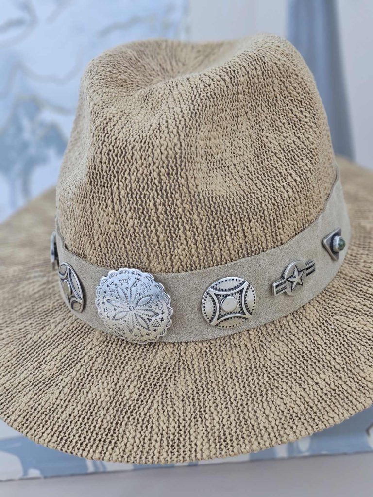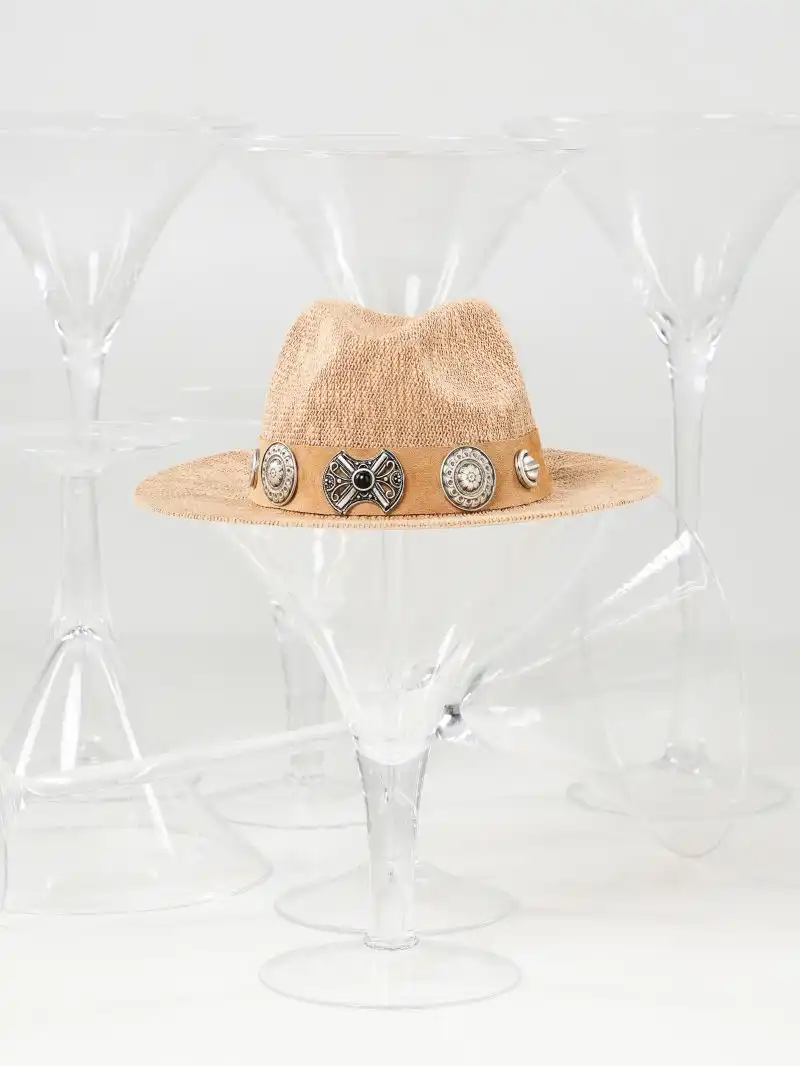 Χειροποίητο γυναικείο καπέλο της εταιρίας Lavita Handbags με μεταλλικά και δερμάτινα στοιχεία.Διαθέτει προσαρμογέα μεγέθους.