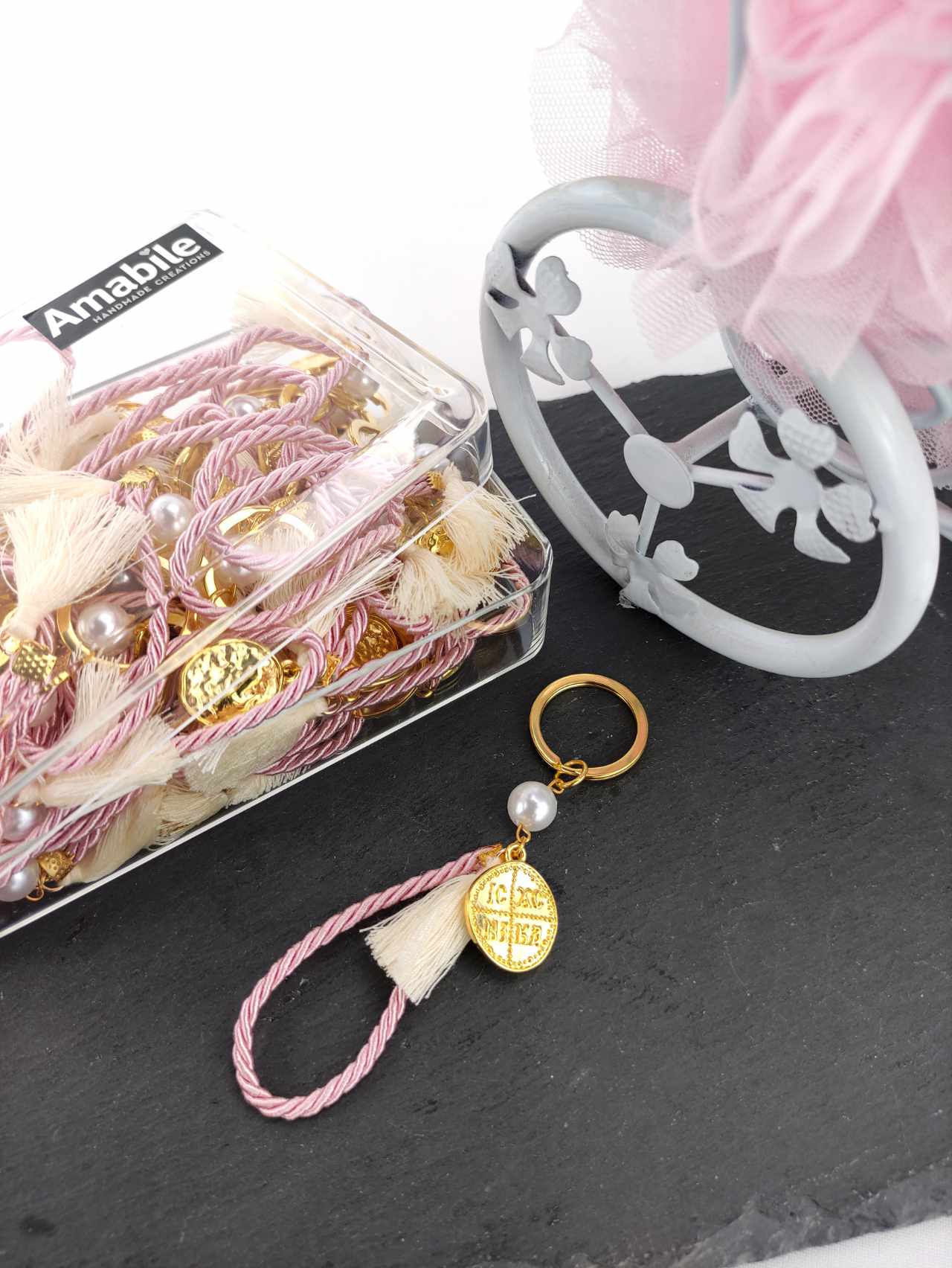 Μαρτυρικό Βάπτισης Μπρελόκ Amabile K14 Ροζ 50 τμχ