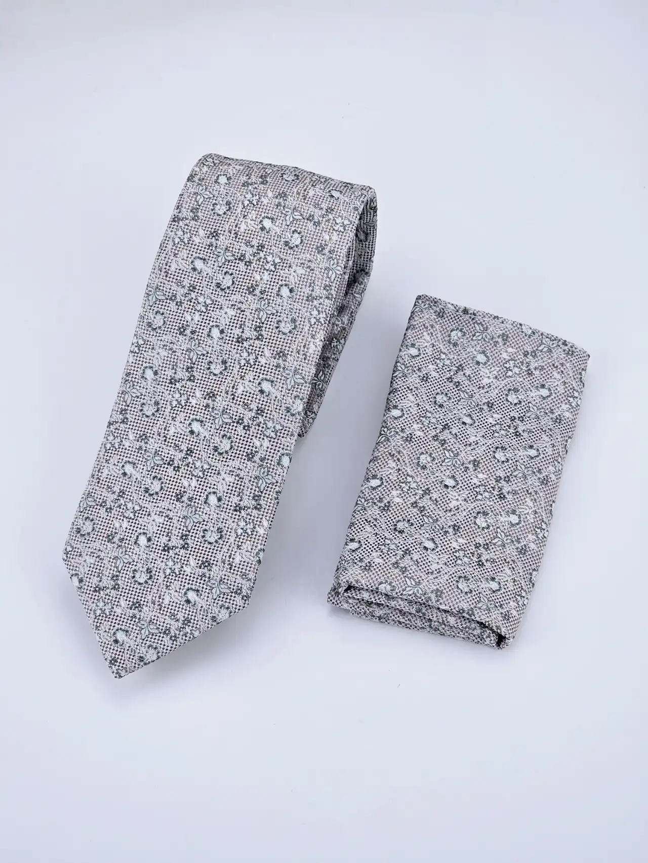 Σετ Γραβάτα με Ποσέτ Μαντήλι Τσέπης Khaki Flowers